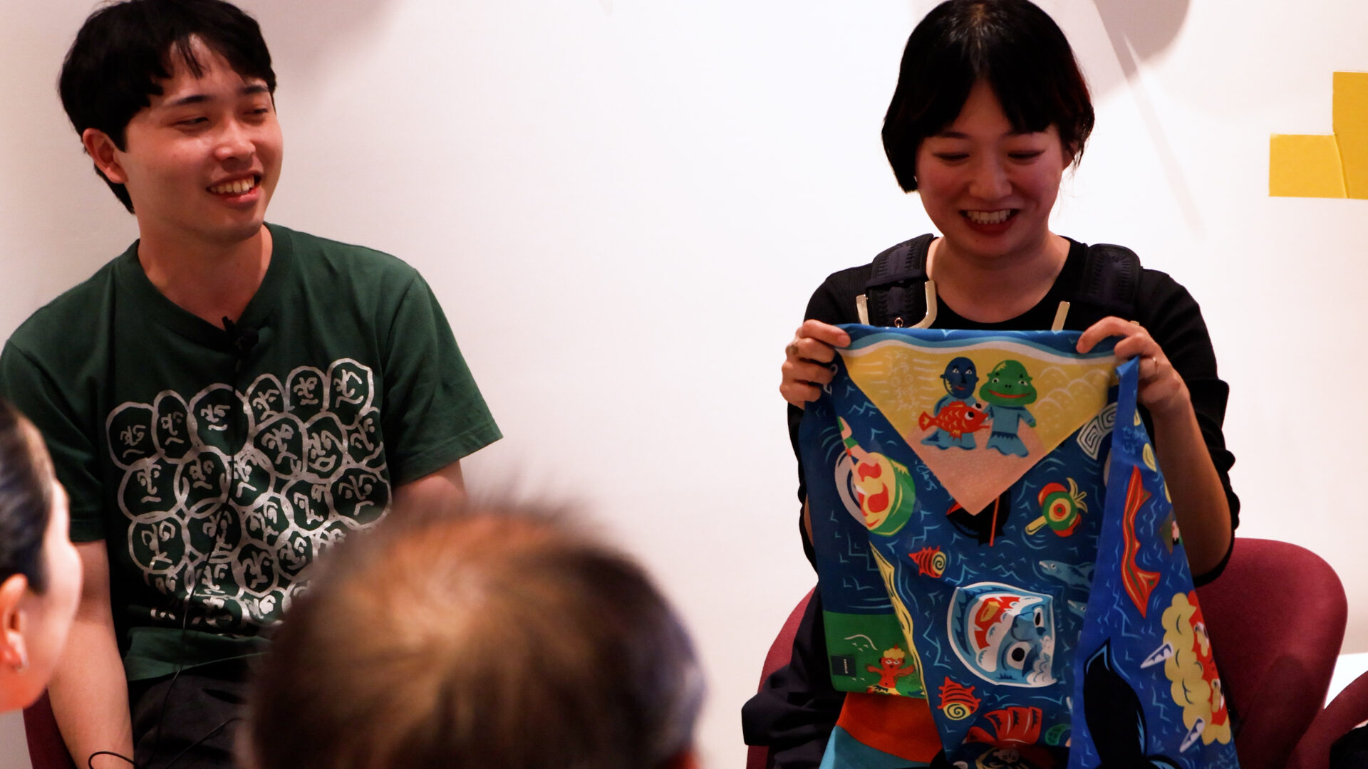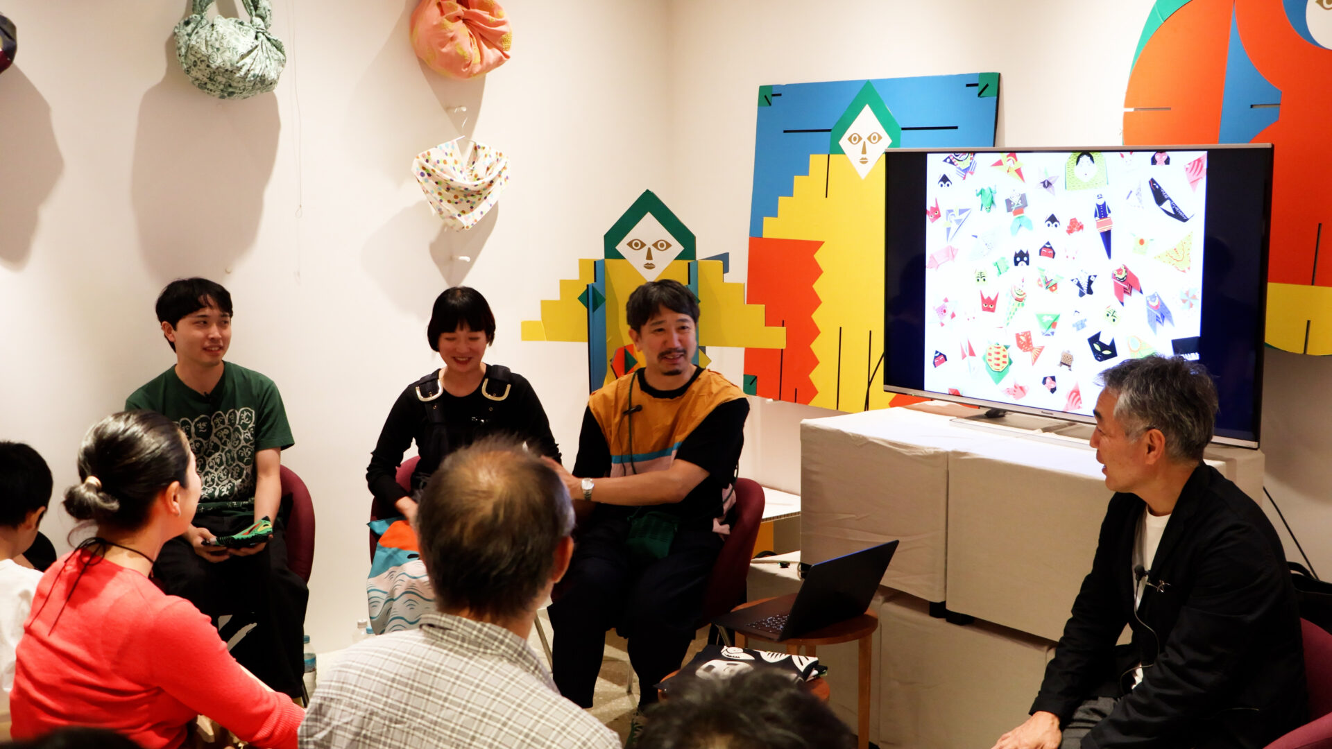 夕方からはCOCHAE のお三方と山田繊維㈱・むす美 山田芳生(代表取締役)によるのトークイベントを開催。クリエィティブな活動の中で大事にしている想いや、新作のふろしきの秘話について語っていただきました。