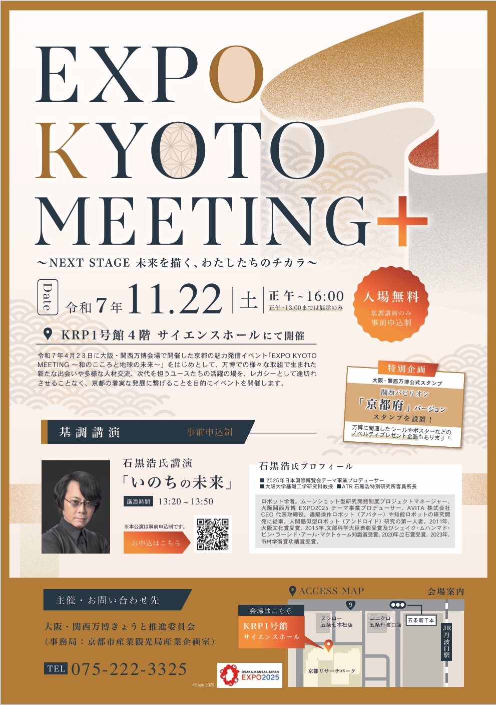 大阪・関西万博きょうと推進委員会により、先日11月22日(土)に「EXPO KYOTO MEETING+(プラス) 〜NEXT STAGE 未来を描く、わたしたちのチカラ〜」が開催されました。
