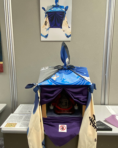 4月のシャインハットでのショーをコンパクトにふろしきの多様性を「運ぶ」「贈る」「守る」で展開。