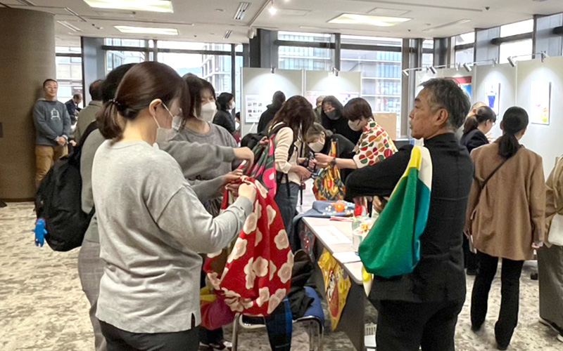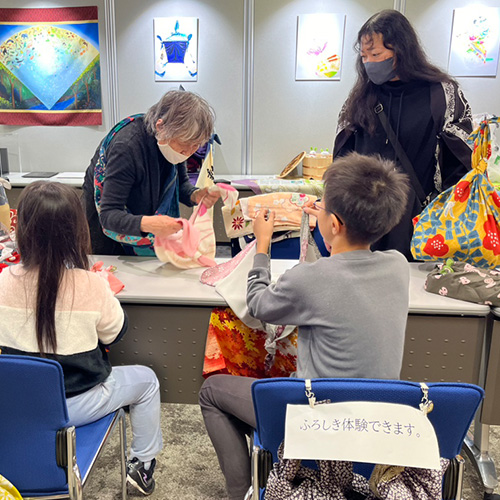 ご家族連れの方からご年配の方まで、様々な年代の方にふろしき体験を楽しんでいただきました。