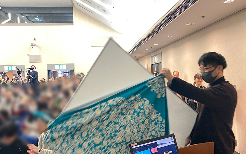 万博同様、ラボにて包み方ワークショップを展開しました。