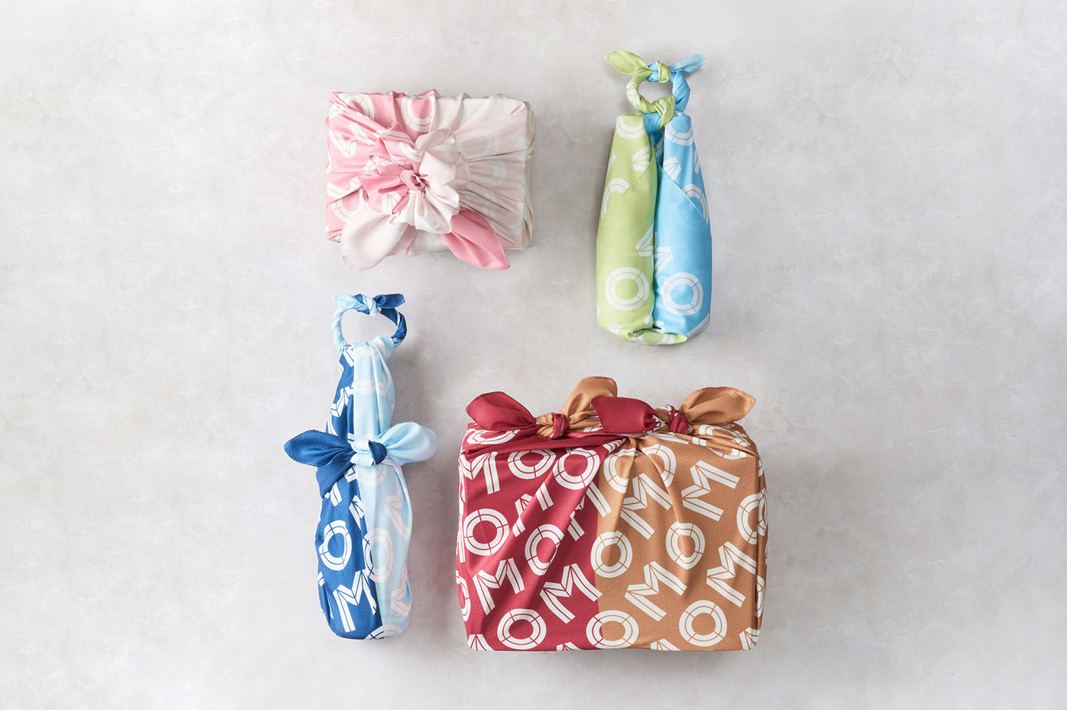 OMO様のロゴをあしらったオリジナルふろしきは、春夏秋冬をイメージした4色展開。